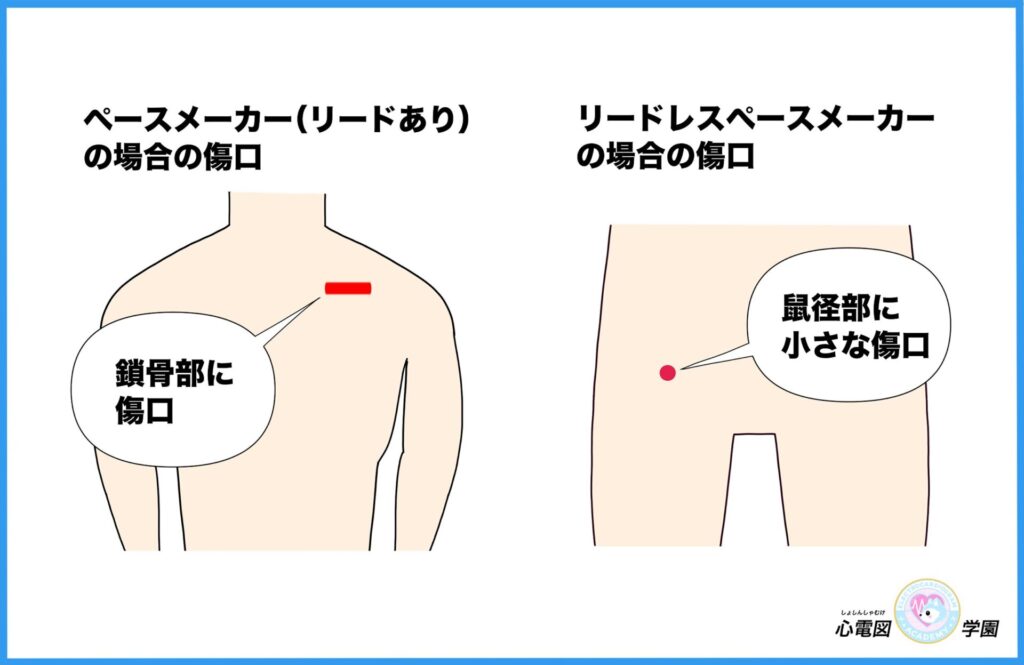 - 通常型は鎖骨部、リードレス型は鼠径部をチェック