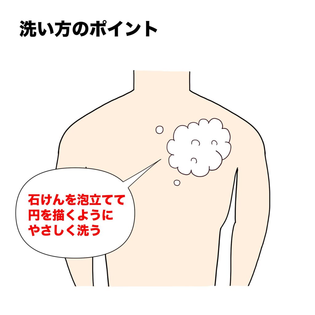 - 石けんは泡立てて、円を描くようにやさしく洗浄
