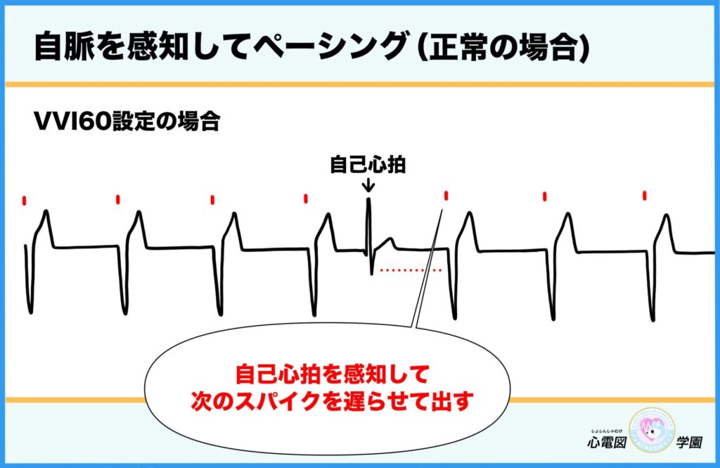 - 本来、自脈が出ているときはペーシングは調整される。