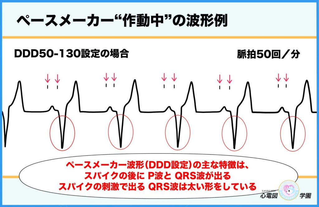 それからペースメーカー波形のタイミングをセットで観察するのがポイントなんだよ。
