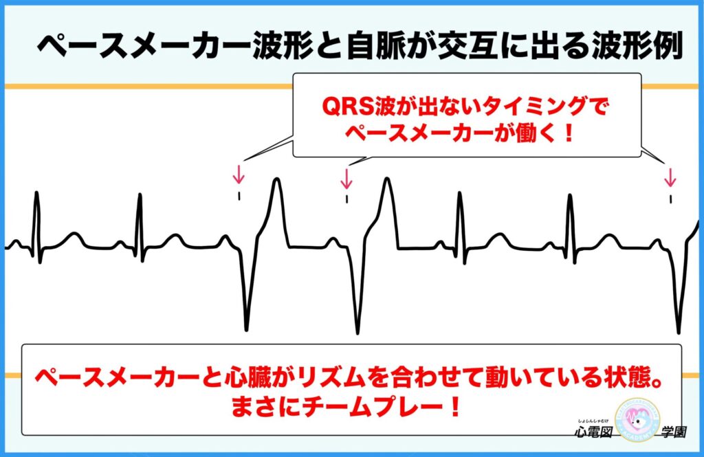 それは、ペースメーカーが自脈の動きを感知して、必要なタイミングでサポートしている状態なんだ。