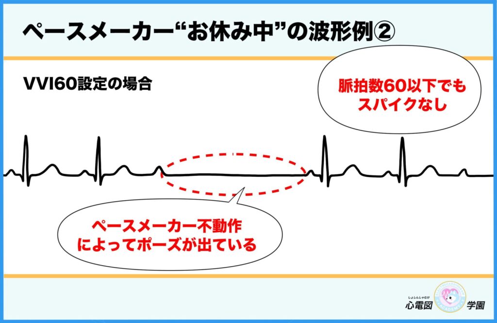 でもね、もし脈が設定よりも遅いのにスパイクが出ていなかったら、