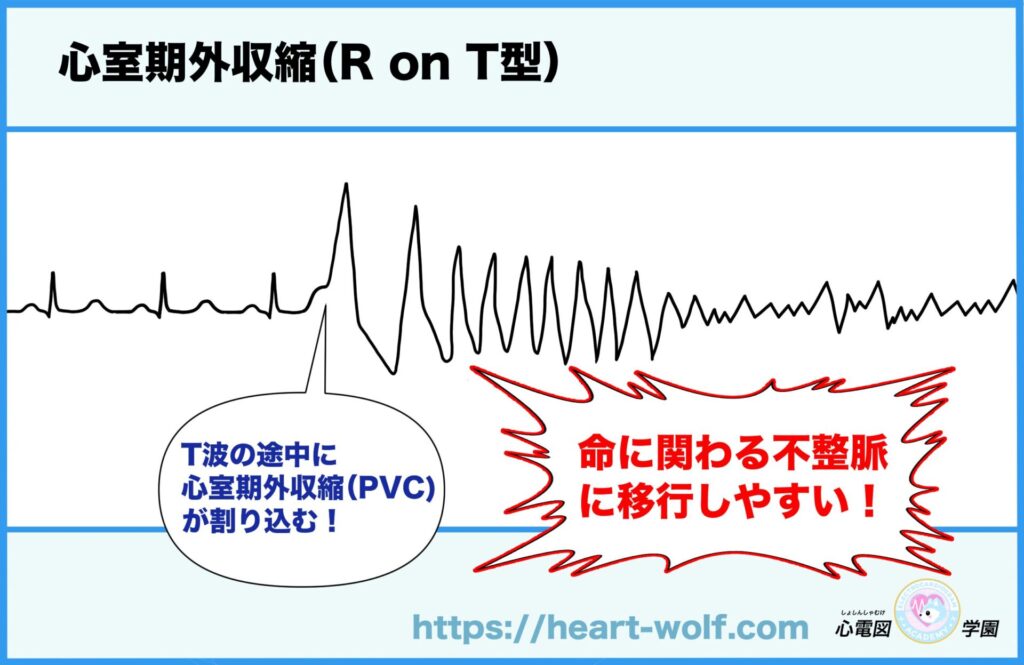 R on T型の心室期外収縮が危険と言われる理由は、主にこの2つです。