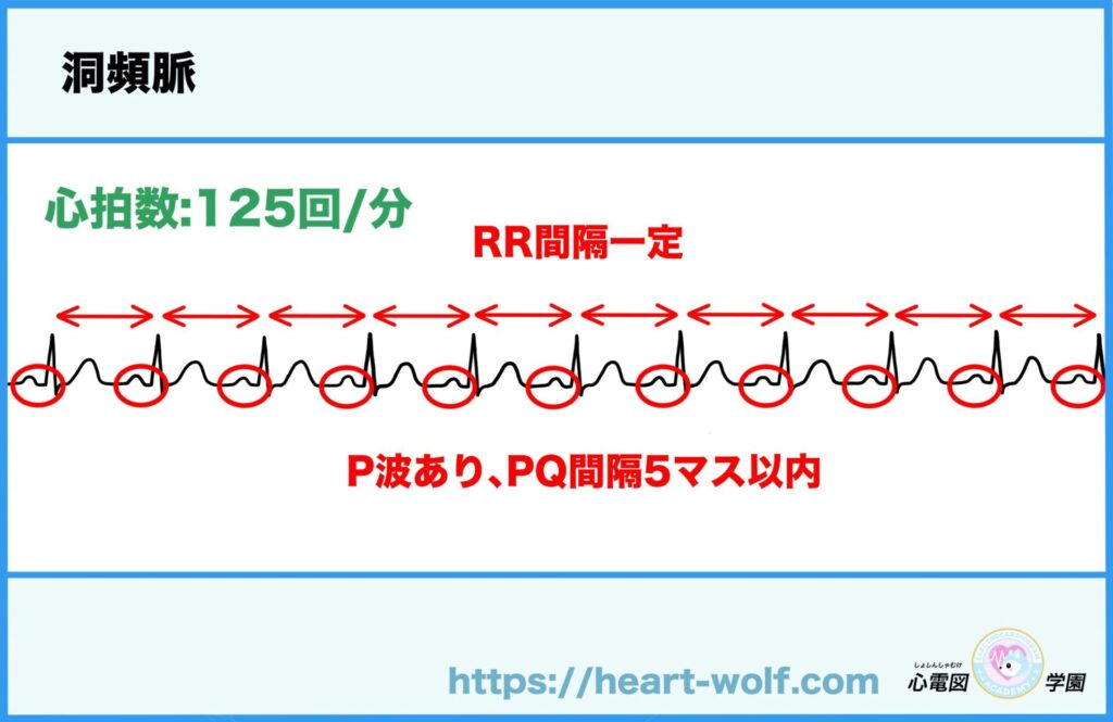 👉 洞調律を見分ける3つのポイントを満たしていれば、洞調律